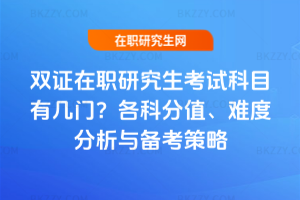 雙證在職研究生考試科目分兩類:管理類聯(lián)考專業(yè)考2門,含管理類聯(lián)考綜合能力(200分,數(shù)學(xué)75分、邏輯60分、寫作65分)和英語二(100分),難度中等,管綜題量大、英語二介于四六級間;非管理類專業(yè)考3-4門,含思政、外國語(各100分)及業(yè)務(wù)課(150分/300分),業(yè)務(wù)課難度依專業(yè)背景定。備考建議用碎片化時間,管理類抓數(shù)學(xué)邏輯,非管理類重業(yè)務(wù)課教材與真題。……