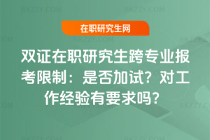 雙證在職研究生跨專業報考,加試主要針對專業跨度大的專業,形式和內容由院校自定,多為合格制。管理類專業要求本科滿3年、專科滿5年工作經驗,部分專業本科滿2年;非管理類專業少強制要求,部分有經驗偏好;特殊專業有經驗與行業資質掛鉤。……