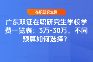 廣東雙證在職研究生學校學費3萬-30萬,3萬-10萬如廣東工業大學適合工廠技術人員,10萬-20萬像暨南大學適配銀行等人員,20萬-30萬的中山大學等適合企業高管。選校要結合預算、職業目標,還需考量學制和上課方式。……