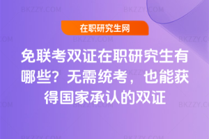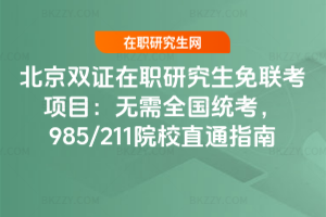 北京雙證在職研究生免聯考項目多為中外合作辦學碩士,由國內名校與國外院校聯合舉辦,如北大與倫敦大學學院等。無需統考,通過院校考核入學,畢業經留服認證等同雙證。報考要滿足學歷、工作經歷等條件,注意認準正規備案項目。……