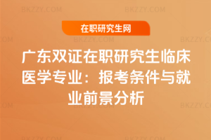 廣東雙證在職研究生臨床醫學專業,報考需本科及以上學歷,持醫師資格和執業證書,注冊崗位與報考方向一致,三甲醫院醫生有資歷要求。就業前景好,助三甲醫院晉升、把握大灣區機遇、滿足基層需求。課程重臨床,學習方式適配在職節奏。……