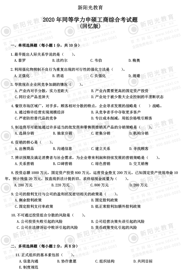 2020同等學力申碩考試及已經結束,同學們很關心自己的考試情況。下面,小編為同學們整理一下2020同等學力工商綜合真題及答案,提供給同學們參考!